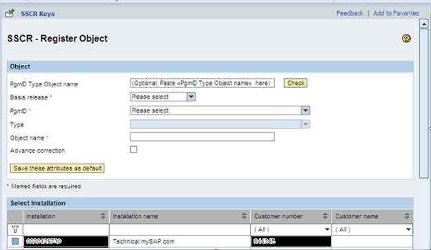 · Now enter the Userid for the developer key generation has been requested and select the Installation number and then click on “Register button"