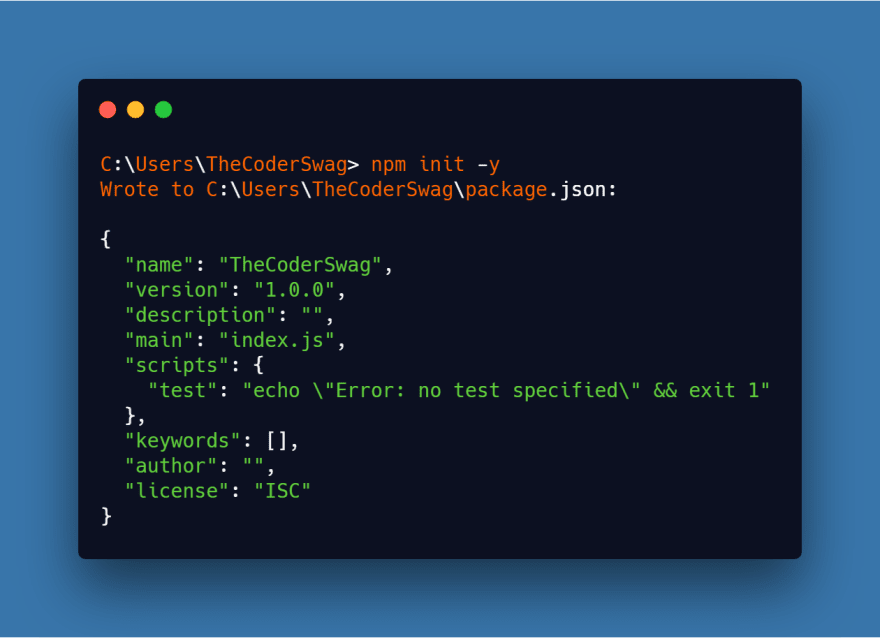 Do you want to quickly initialize a new package? Are you tired of those infinite system questions that appear when doing so? Then run npm init-y or npm init-f.These commands will allow you to skip those questions and jump straight into your next amazing project!